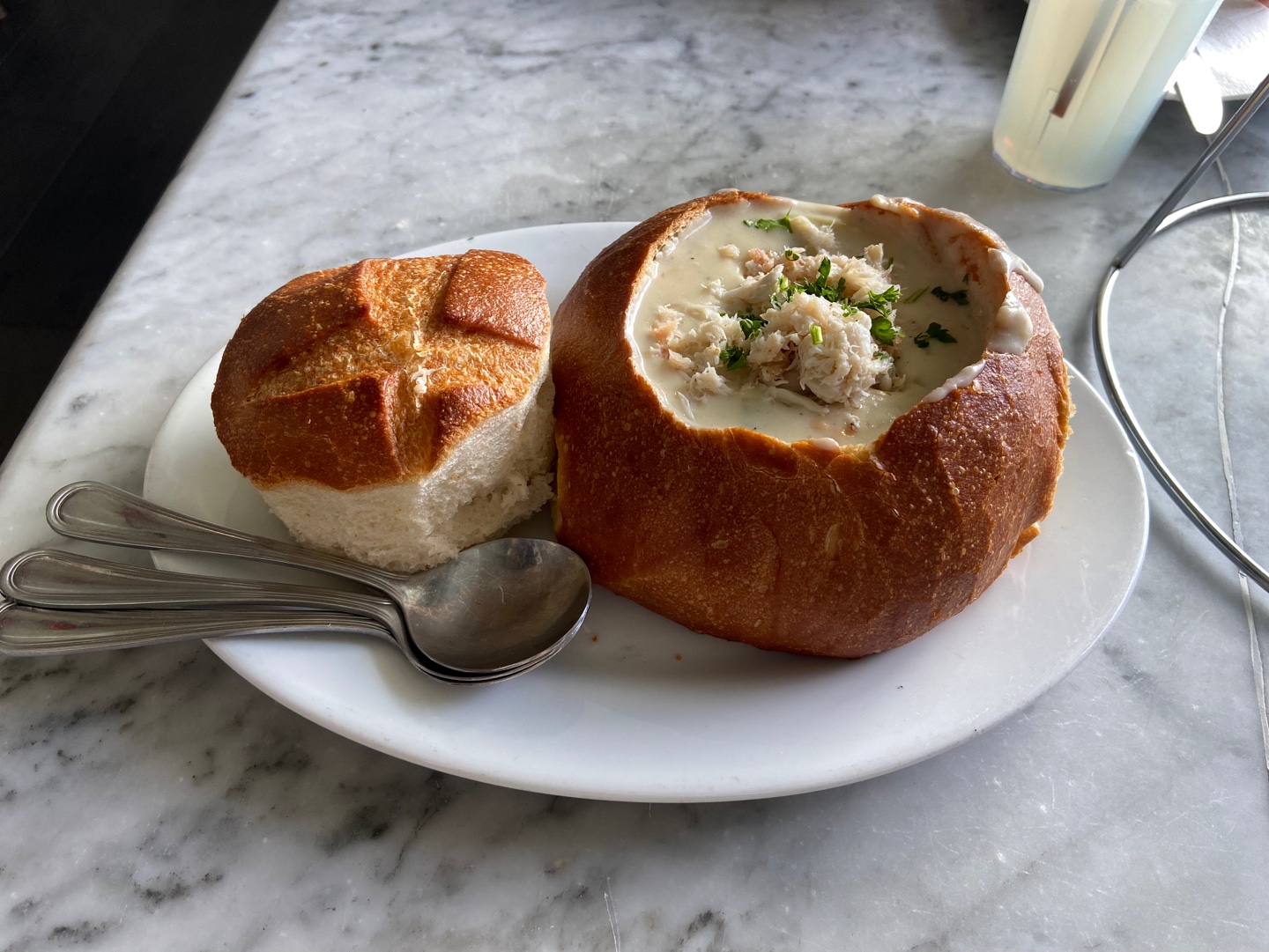 주문할 때 1인당 크랩 차우더 1개