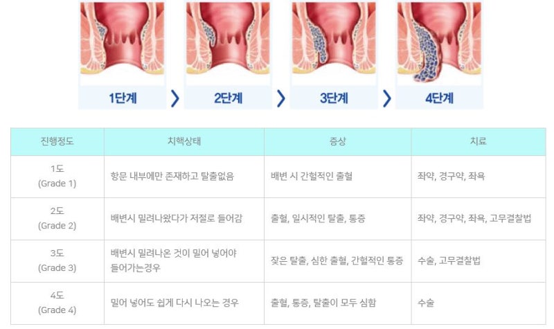 치핵은 항문 혈관 조직이 커지면서 혈관 덩어리가 빠져나가는 것을 의미합니다. 발달 정도에 따라 치질 치료 방법이 달라지므로 치핵의 진행 상황을 잘 파악하여 증상이 심해지기 전에 미리 예방하는 것이 중요합니다.그래서 이번 시간에는 단계에 따른 치질 치료 방법과 치핵 예방법에 대해서 자세히 알아보도록 하겠습니다.먼저 치핵은 외부에 발생하는 외치핵과 내부에 발생하는 내치핵으로 구분됩니다.외치핵은 항문 밖에 발생하는 치질로 콩알 같은 덩어리가 만져지며 심한 통증을 동반하는 특성을 가지고 있습니다. 응어리 안에는 혈전 덩어리가 들어 있어서 이 부분에 출혈이 생길 수 있습니다.한편, 내치핵은 항문 내에 발생하는 치질로 통증은 없는 것이 특징입니다. 통증은 없지만 붉은 출혈이나 치핵 덩어리가 항문을 통해 빠지는 증상이 나타날 수 있습니다.내치핵은 진행 정도에 따라 1기에서 4기로 구분됩니다.1등급: 치핵이 있는데 항문에서 탈출하지 않은 단계입니다 2등급: 치핵은 변을 볼 때 항문으로 빠져나오는데 배변을 마치면 스스로 항문 속으로 복원됩니다 3등급: 치핵이 변을 볼 때 항문으로 빠져나가지만 스스로 복원되지 않은 상태에서 손가락으로 밀어 넣으면 항문 안으로 들어갑니다 4등급: 빠져나온 치핵덩어리가 구해도 들어가지 않는 상태로 치핵괴의 혈액순환이 차단되어 썩을 수 있기 때문에 응급수술이 필요한 상태입니다.각 단계마다 증상이 다르므로 정확한 검사 후 상태에 적합한 치질 치료 방법을 선정해야 합니다.그래서 저희 병원에서는 초기 단계에 해당하는 1~2기에는 비수술적 치료를 우선하고 있습니다. 비수술적 치료로는 온수 좌욕, 약물 치료, 식이 요법 등이 있습니다. 이것도 상태에 따라 선별적으로 진행되고 있습니다.주의사항으로 의료진의 진단 없이 임의로 중단해서는 안 됩니다. 간혹 증상이 호전된 줄 알고 임의로 치료를 중단하시는 분들이 계시지만 증상이 완전히 호전되지 않은 상황이라면 더 큰 피해가 될 수 있습니다.수술적 치질의 치료 방법은?기존 치핵절제술은 처져 노출된 치핵조직을 절제한 후 발생하는 출혈을 주변 조직을 잡아당겨 봉합해 왔습니다. 고무줄을 당기면 팽팽한 긴장이 생기도록 주변 조직을 당겨 봉합했기 때문에 회복 기간 동안 높은 압력과 긴장이 형성되었고 입원과 함께 통증이나 걷거나 앉을 때 불편함으로 도넛 방석과 같은 보조기구가 필요했습니다.그래서 저희 병원에서는 이러한 단점을 봉합하고 리가슈어를 활용한 치료가 이루어지고 있습니다. 리가슈어는 열을 활용해 치핵 조직을 절제하기 때문에 절제와 동시에 즉시 혈액 응고 반응이 나타나 별도 봉합이 필요 없는 치질 치료 방법입니다.치질 예방이 안 되나?치질은 예방할 수 있습니다. 질환을 예방하기 위해서는 오랜 시간 같은 자세를 취하지 않는 것이 좋고 장시간 앉아 있는 직장인, 학생이라면 가끔 일어나 항문에 압력이 집중되는 시간을 줄이고 변비에 걸리지 않도록 평소 섬유질이 많은 음식을 섭취하는 것이 좋습니다.또한 복통이나 설사를 유발하는 자극적인 음식을 멀리하는 등 잘못된 생활습관을 개선하는 것이 중요합니다.예방을 위한 노력을 했음에도 불구하고 문제는 나타날 수 있습니다.누구에게나 치질과 같은 항문 질환이 나타날 수 있습니다. 문제가 발생했다면 부끄러워하고 방치하기보다는 초기에 대응해서 항문 건강을 지켜줬으면 좋겠습니다.만약 치질 치료 방법에 대해 더 궁금하신 점이나 치료를 고민하고 계시다면 언제든지 편하게 말씀해 주십시오. 봄날 외과에서는 친절한 답변으로 도와드리고 있습니다.누구에게나 치질과 같은 항문 질환이 나타날 수 있습니다. 문제가 발생했다면 부끄러워하고 방치하기보다는 초기에 대응해서 항문 건강을 지켜줬으면 좋겠습니다.만약 치질 치료 방법에 대해 더 궁금하신 점이나 치료를 고민하고 계시다면 언제든지 편하게 말씀해 주십시오. 봄날 외과에서는 친절한 답변으로 도와드리고 있습니다.누구에게나 치질과 같은 항문 질환이 나타날 수 있습니다. 문제가 발생했다면 부끄러워하고 방치하기보다는 초기에 대응해서 항문 건강을 지켜줬으면 좋겠습니다.만약 치질 치료 방법에 대해 더 궁금하신 점이나 치료를 고민하고 계시다면 언제든지 편하게 말씀해 주십시오. 봄날 외과에서는 친절한 답변으로 도와드리고 있습니다.