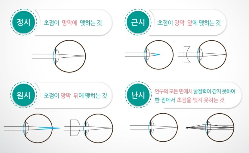 데스크톱, 스마트폰 등 전자기기 사용이 늘면서 사람들의 시력이 점점 떨어지고 있습니다. 독서나 스마트기기 이용과 같은 근거리 운동을 장기간 하면 공 사태의 안구가 앞뒤로 길어지고 근시가 진출하기 쉽습니다. 망막 위에 맺어야 할 초점이 망막 앞에 묶여 가까운 곳은 잘 보이지만 먼 곳의 물체는 잘 보이지 않게 되는 것을 근시라고 합니다. 역시 눈의 구조에는 이상이 없지만 시력이 곧지 않은 경우를 일으킵니다.