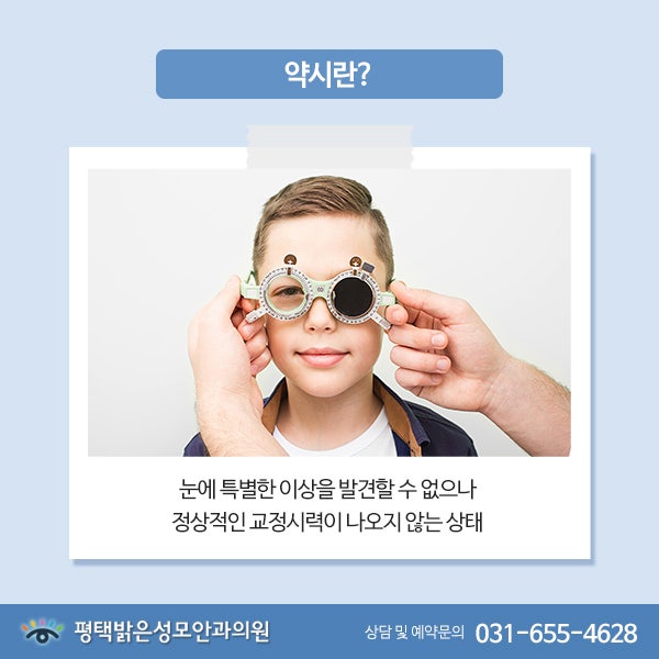 사람의 시력은 계속 발달하여 일반적으로 6~9세 사이에 시력이 완성됩니다. 따라서 이 시기에 안과 검진을 통해 시력을 검사해 주어야 합니다. 시력 관찰에서 두 눈의 시력 오차가 큰 한쪽 눈으로 나왔다면 한쪽 눈 시력 교정이 반드시 필요합니다. 시력이 나쁜 분을 교정해 주지 않으면 시력이 나쁜 분의 눈이 제 기능을 하지 못하고 그 기능이 약해져서 약시로 향할 가능성이 향상됩니다. 그리고 시력이 좋은 분의 눈은 혹사당하고 훌륭한 분의 시력도 금방 나빠집니다.